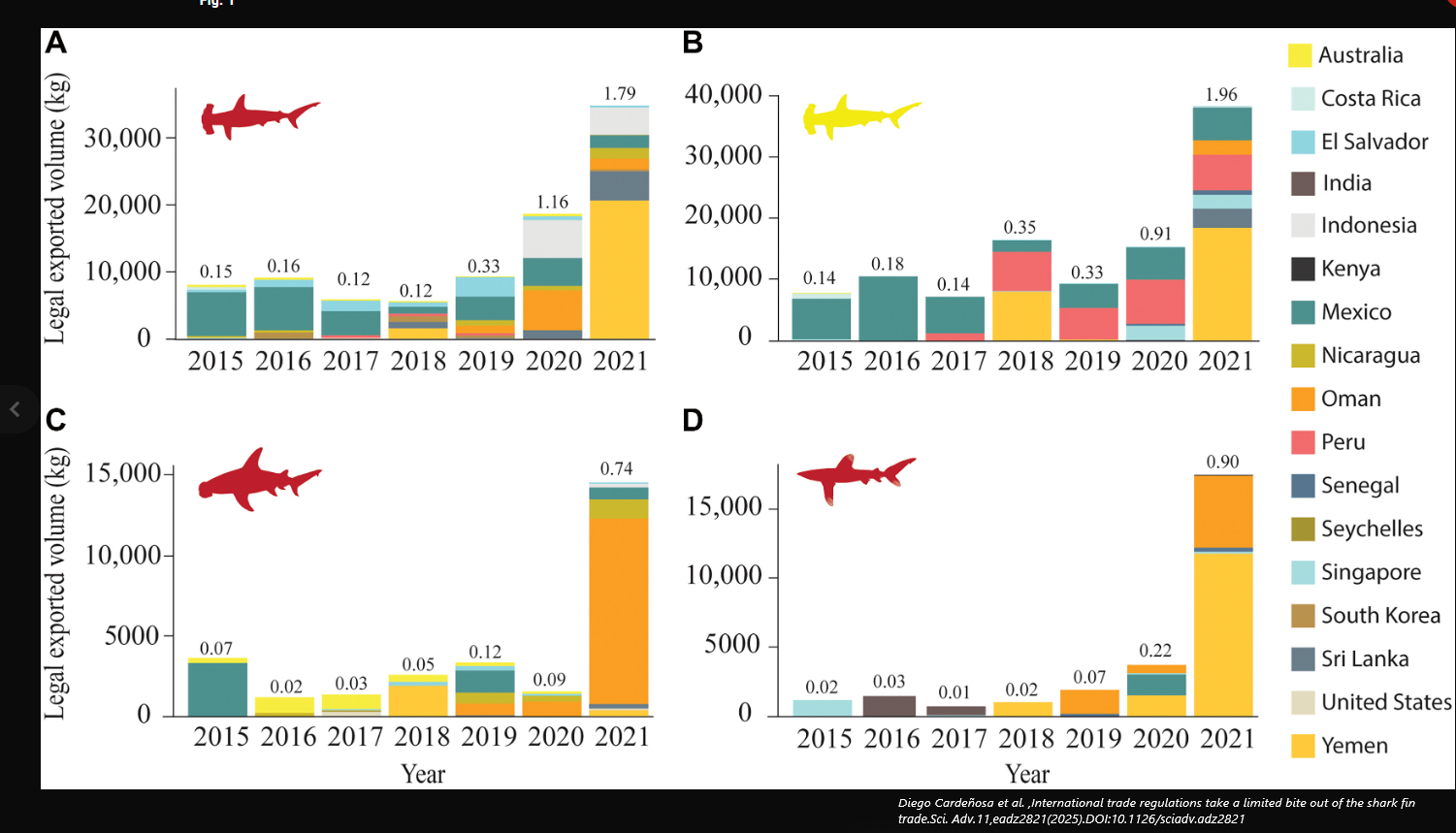 Diego Cardeñosa et al. ,International trade regulations take a limited bite out of the shark fin trade.Sci. Adv.11,eadz2821(2025).DOI:10.1126/sciadv.adz2821