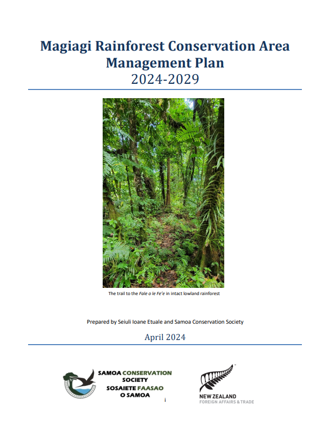 The Magiagi leaders, Pulega a Ali’i ma faipule wish to dedicate a part of their land to establish a Rainforest Conservation Area (RCA). Their vision is for the protection and preservation of their natural and cultural resources to benefit current and future generations. The Management Plan (MP), identifies key values of the Conservation Area (CA) and a set of objectives and strategies are developed to restore, protect and safeguard those values.