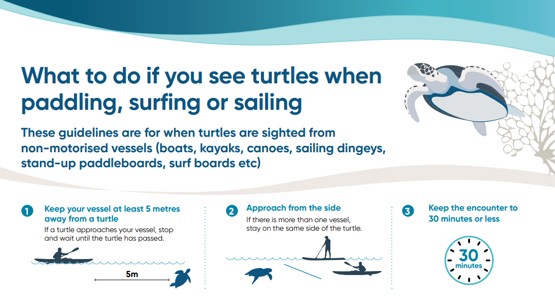 These guidelines are for when turtles are sighted from non-motorised vessels (boats, kayaks, canoes, sailings dingeys, stand-up paddleboards, surfboards etc.)Also available in Bislamic and French language Call Number: [EL]Physical Description: 1 p.