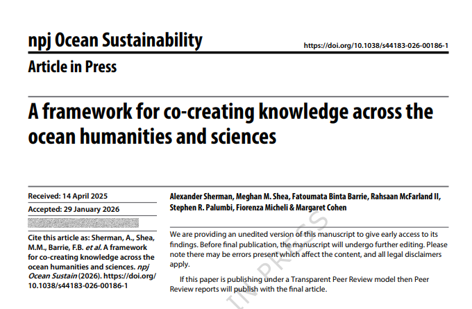 Sherman, A., Shea, M.M., Barrie, F.B. et al. A framework for co-creating knowledge across the ocean humanities and sciences. npj Ocean Sustain (2026). https://doi.org/10.1038/s44183-026-00186-1