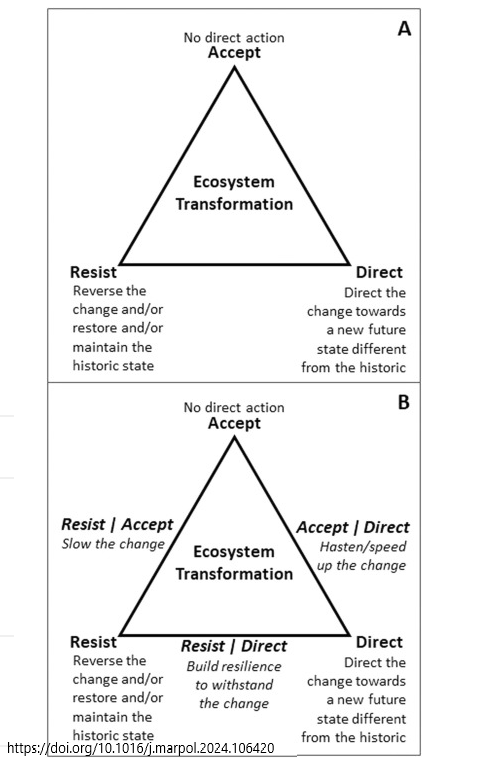 Climate change and its impacts are increasingly threatening the ability of marine protected areas (MPA) to meet their conservation goals. While integration of climate change into planning is critical, a recent global analysis found that relatively few MPAs have incorporated climate change considerations into formal management planning processes. Despite this, sessions and discussions at the Fifth International Marine Protected Areas Congress (IMPAC5) demonstrate that climate-adaptive management already permeates MPA processes, from day-to-day management to design and implementation. Here we review the results of an IMPAC5 knowledge exchange session that brought together a diverse group of MPA managers, Indigenous community representatives, and thought leaders to discuss improved integration of climate change into MPA management and planning. The session demonstrated the vibrancy, diversity, and engagement represented in the dynamic and fast-moving field of MPA climate change management and planning. In addition to sharing unique and diverse perspectives, the session leveraged the experience of experts to identify new and common challenges and gaps. As a result of this session, we present five recommendations, building on previous work, to guide MPA managers in the explicit and successful incorporation of climate adaptation into management planning and implementation. These recommendations hold the goal of ensuring an equitable, adaptive, and robust global MPA system. This review also provides a valuable summary of the vast repository of experience and knowledge of climate adaptive management contained within the MPA management community, and with community and Indigenous partners. Such perspectives are rarely reflected in formal scientific, policy, and management publications.