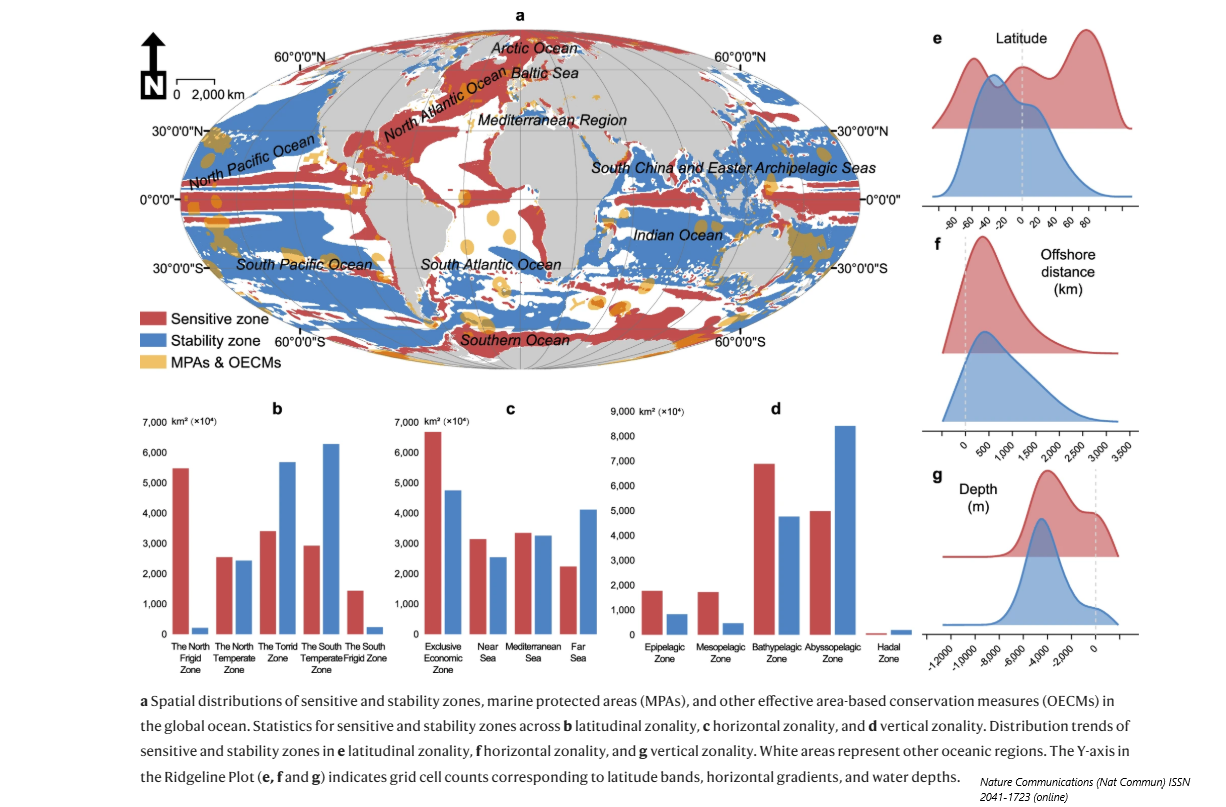 Global changes threaten marine species, making marine climate refugia essential for biodiversity conservation and climate change mitigation. Our analysis maps sensitive and stability zones across the global ocean. We define marine climate refugia as climate-resilient zones with global conservation consensus under the worst-case emissions scenario for 2100. Marine climate refugia span 17.6 million square kilometres, with 96% within exclusive economic zones. Only 34% of oceanic areas and 29% of marine protected areas (MPAs) and other effective area-based conservation measures (OECMs) lie in stability zones. Twenty large-scale patches form the principal bodies of marine climate refugia, with 85% crossing multiple exclusive economic zones. Conservation gaps cover 70% of marine climate refugia. Closing these gaps could increase global ocean protection to 14% and exclusive economic zones protection to 30%. To achieve the 30 by 30 target, we recommend expanding MPAs and OECMs based on marine climate refugia locations and addressing transnational management challenges.