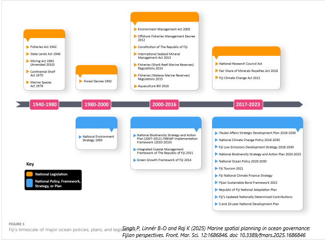 Marine Spatial Planning (MSP) is a globally established tool to support integrated ocean management. As Small Island Developing States (SIDS) embrace MSP, this study focuses on Fiji as it begins its MSP process alongside the implementation of newly established ocean-related policies and legislation. The study investigates whether MSP has the potential to address the challenges identified by various actors and, if so, to explore how this can be achieved. A mixed-methods case study approach was employed, combining analysis of national policy documents with semi-structured interviews involving key actors in Fiji’s ocean governance. Guided by collaborative governance theory, interview data were thematically analyzed using NVivo. The results indicate that MSP could serve as a viable governance tool capable of addressing institutional silos and overcoming coordination challenges. However, prevailing interagency conflicts, power imbalances between stakeholders, and ambiguity surrounding roles and responsibilities pose significant barriers to meaningful participation, risking the reinforcement of the status quo. Our findings highlight that effective leadership, inclusive governance arrangements, financial sustainability, and social capital are mutually reinforcing enablers of collaboration within MSP. Finally, we recommend a staged, evidence-based approach to institutional reform aligned with fiscal and political realities that offers the most viable pathway to building a legitimate, resilient, and durable MSP system.