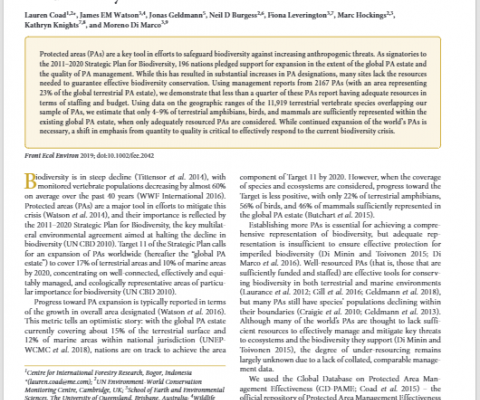 Using management reports from 2167 PAs (with an area representing 23% of the global terrestrial PA estate), we demonstrate that less than a quarter of these PAs report having adequate resources in terms of staffing and budget. Click on the link below to access the full paper.