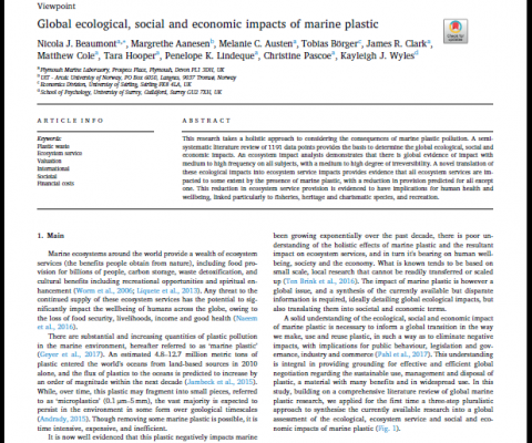This research takes a holistic approach to considering the consequences of marine plastic pollution. A semi-systematic iterature review of 1191 data points provides the basis to determine the global ecological, social and economic impacts.