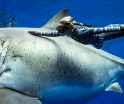 Several photos and videos of Ramsey swimming with, and even occasionally touching, the giant shark have since gone viral on social media, leaving many awestruck over the breathtaking images.